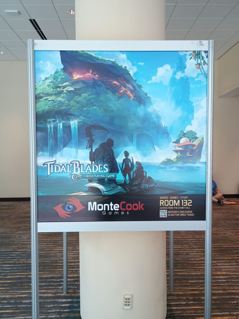 We hung out at The Stink for a while, helped a few folks with the Passport Game ( find a person who’s been to more than 10 Gen Cons, travelled more than 5000 miles, that sort of thing ), then headed off for a drink in the nearby Omni hotel bar.