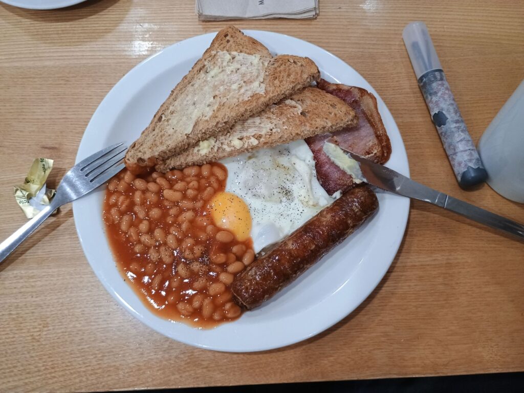 ¹ We’d assumed it would be some kind of buffet breakfast situation, but it was much more complicated than that. The continental breakfast bit was a buffet, the cooked bits you ordered from a waiter, the coffee you got from a machine with a long-ass line, and the Stag’s “poached eggs and vegan bacon” was two eggs and a strip of ‘bacon’ the size & shape of a stick of gum.