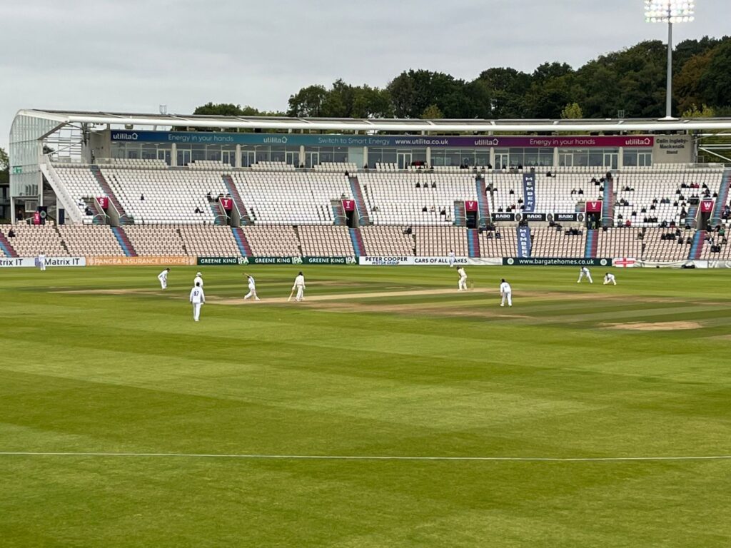 The event was Alex’s stag/bachelor weekend, which he organised himself, so there was a lot of cricket involved, starting with day three of a match at a stadium in Southampton. Well, near Southampton.